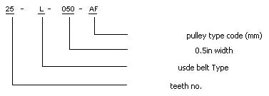 The part number of the synchronous pulley is defined and identified by three parameters: pitch, number of teeth and applicable synchronous belt width. For example: part number AF29-8M-30 meaning: 8mm pitch, 29 teeth, AF means synchronous pulley code, and 30mm synchronous belt width is applicable.